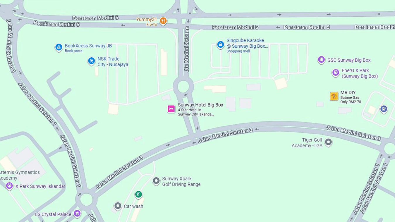Address: Sunway Hotel Big Box, Persiaran Medini 5, Bandar Medini Iskandar, 79250 Iskandar Puteri, Johor.