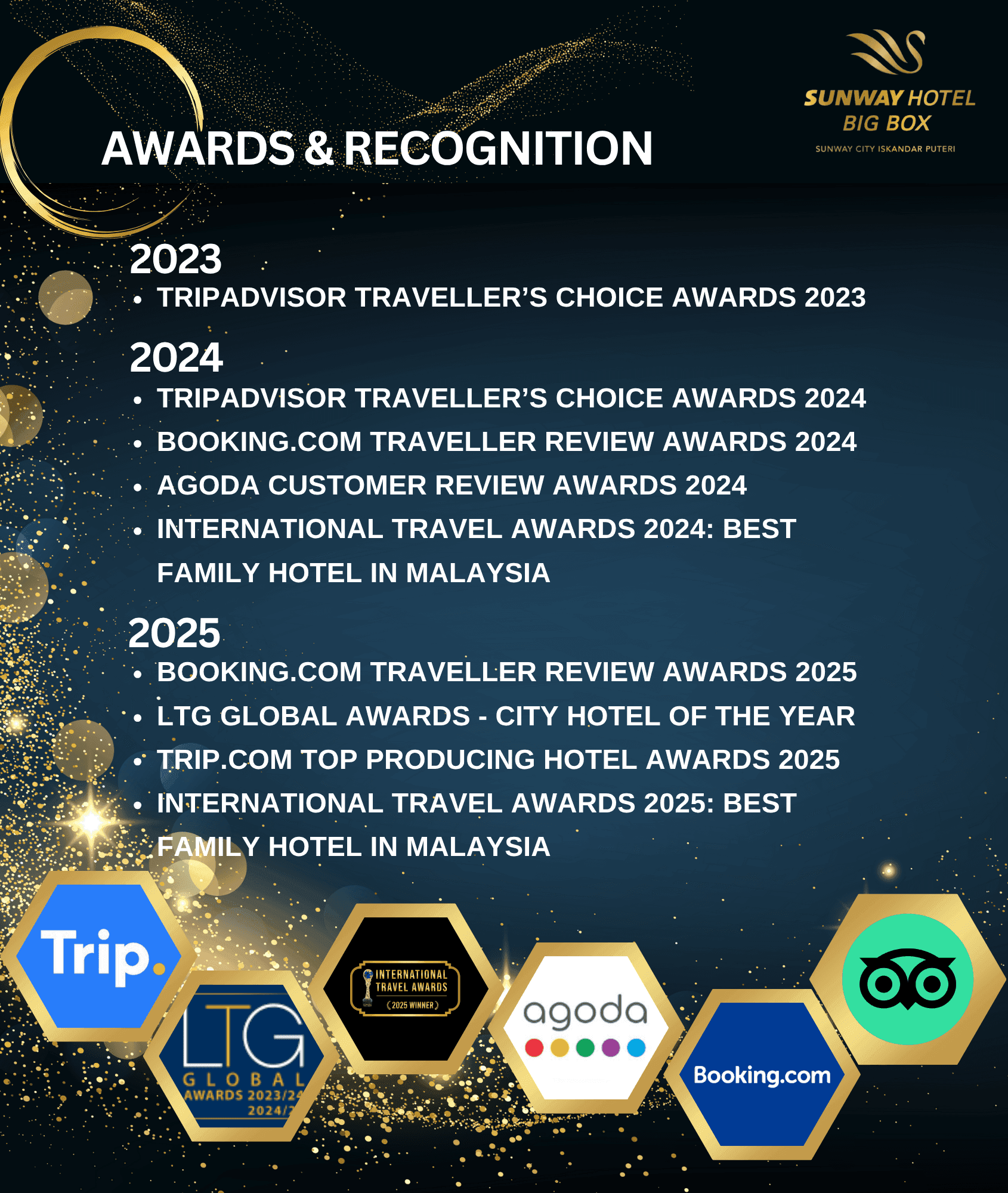 Savour super savings, incredible offers and irresistible experiences when you book direct at Sunway Hotel Big Box. Whether it's a business trip or #BigLittleBreak, simply book directly with us, select your favourite room and enjoy the exclusive rates. Let us help you put away the pennies for the things that matter most.