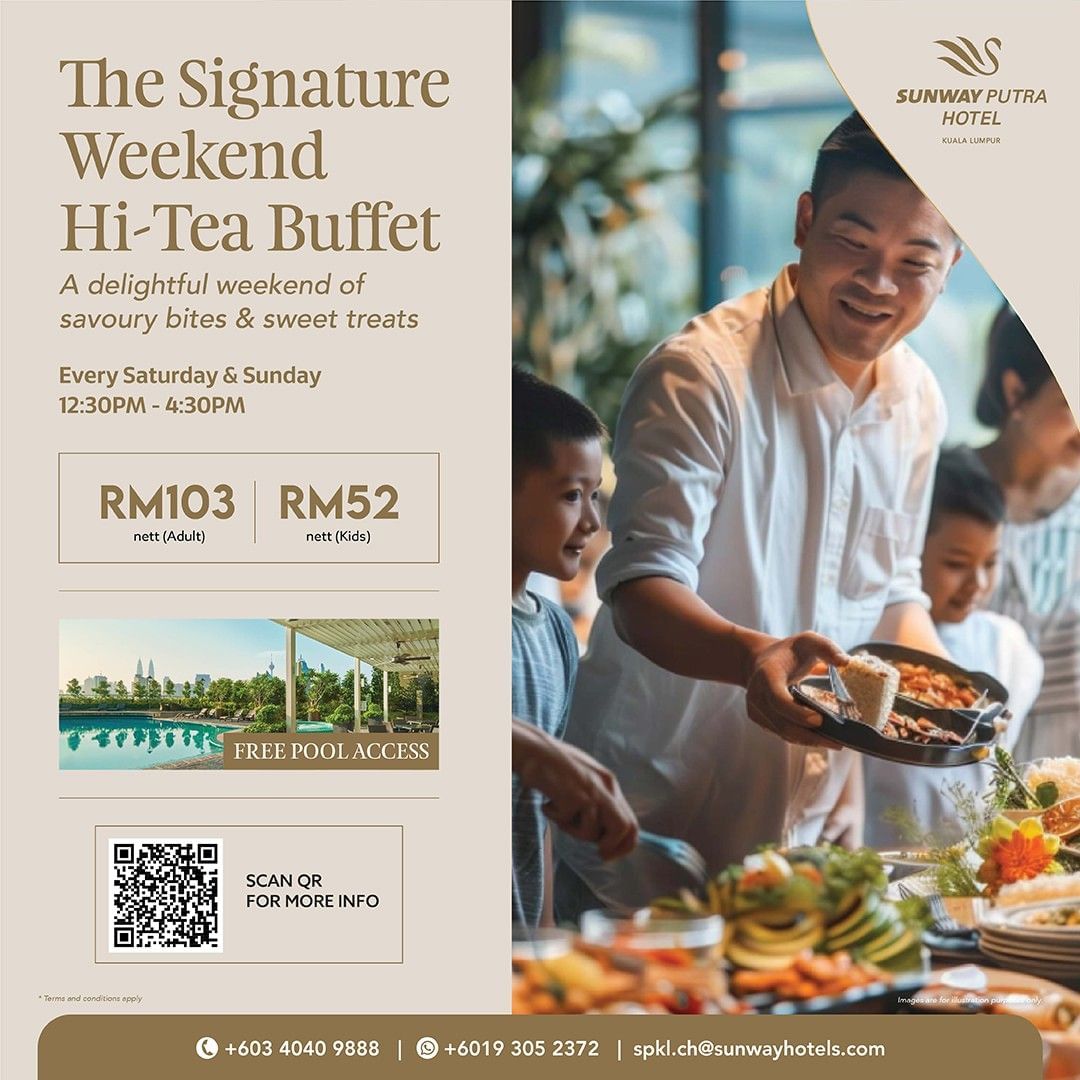 Escape the ordinary and elevate your weekends with The Signature Weekend Hi-Tea Buffet at Sunway Putra Hotel. Immerse yourself in a delightful culinary journey where sweet and savour delicacies unite to create an unforgettable dining experience.