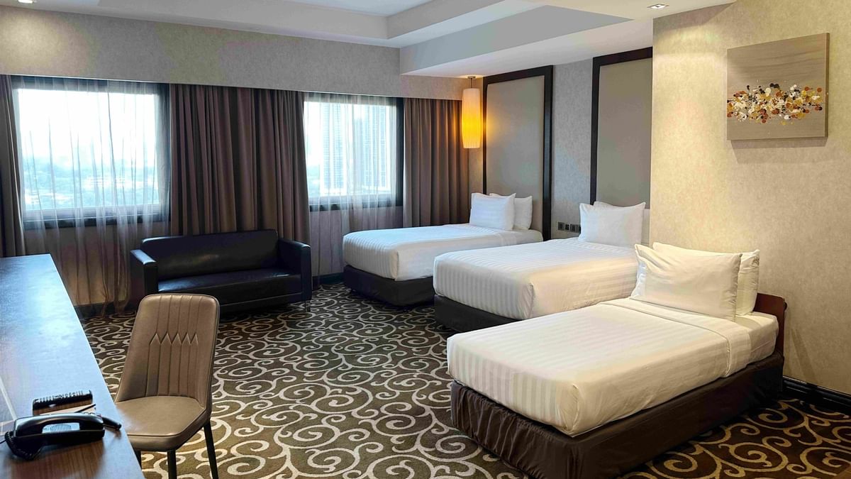 Take your entire family out on vacation with our Junior Suite Twin that comes with twin beds plus a single bed, with a complimentary cot for babies under two years old. Explore where to stay in KL with your family this holiday season. The room includes a dining table and an LED Smart TV with movies, YouTube and local channels, among many other amenities.