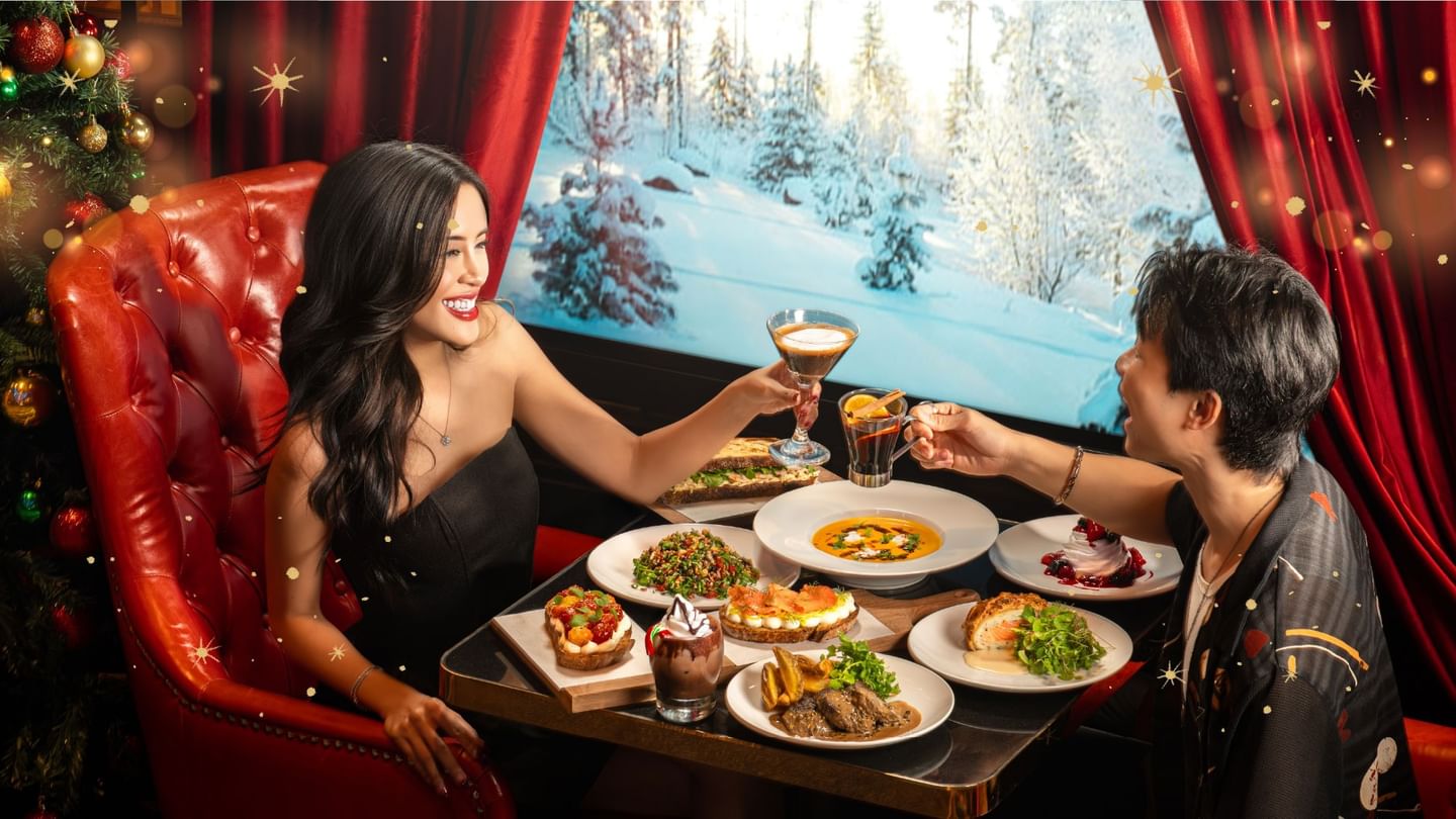 A heartwarming Christmas feast awaits, from comforting soups like Beef Short Rib and Spiced Pumpkin & Stracciatella to handcrafted sandwiches and hearty meals such as Salmon En Croûte and the classic Steak au Poivre. End on a sweet note with a cloud-like Pavlova or indulge in our decadent Chocolate Cake.