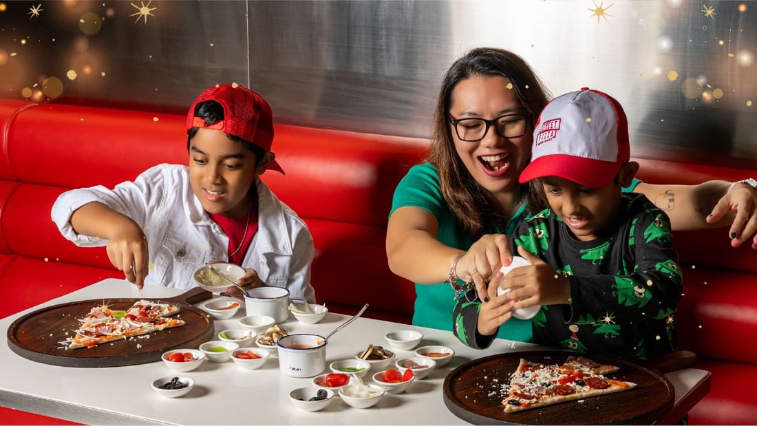 Let your little ones go wild as they craft their own festive masterpiece — a Christmas tree-shaped pizza topped with their favourite ingredients