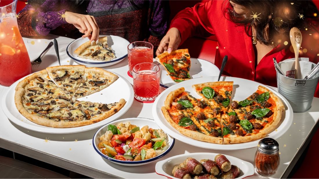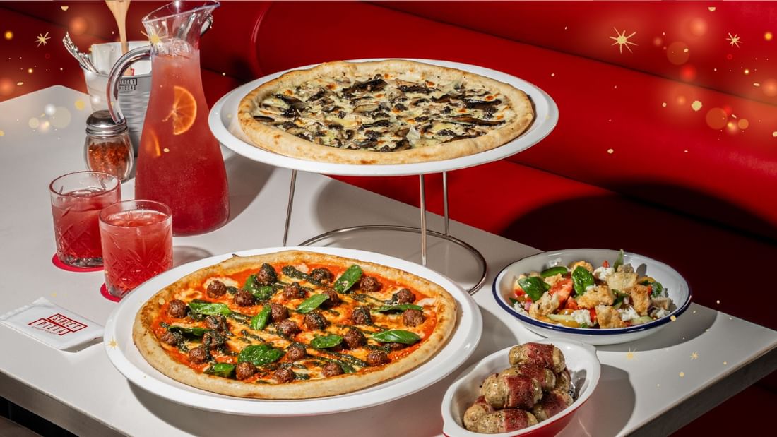 Treat your loved ones to a flavour-packed celebration this festive season with a spread of holiday-inspired pizzas and snacks. Indulge in Mortadella & Burrata Pizza, Truffle Mushroom Pizza, Meatball Pizza, Chicken Sausage Roll and Panzanella Salad. For a spirited touch, sip on the indulgent Vodka Chocolate or share the non-alcoholic The Red One Pitcher.